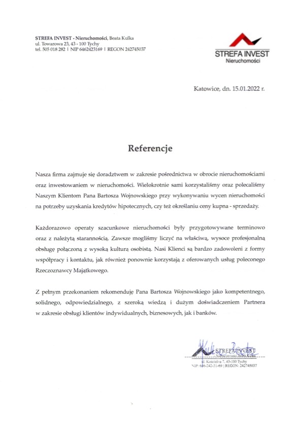 Zestawienie zawodu Rzeczoznawcy Majątkowego i Pośrednika w obrocie nieruchomościami pozwala mi na indywidualne podejście do każdego klienta. Wszechstronna wiedza i doświadczenie umożliwiają mi rozwiązanie każdego postanowionego przede mną wyzwania.
